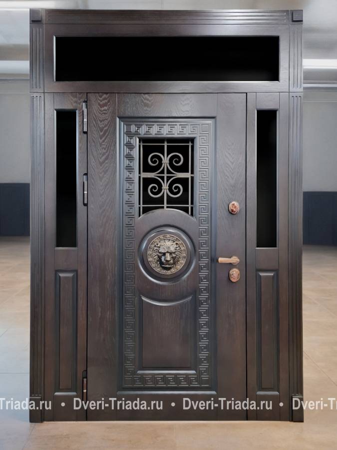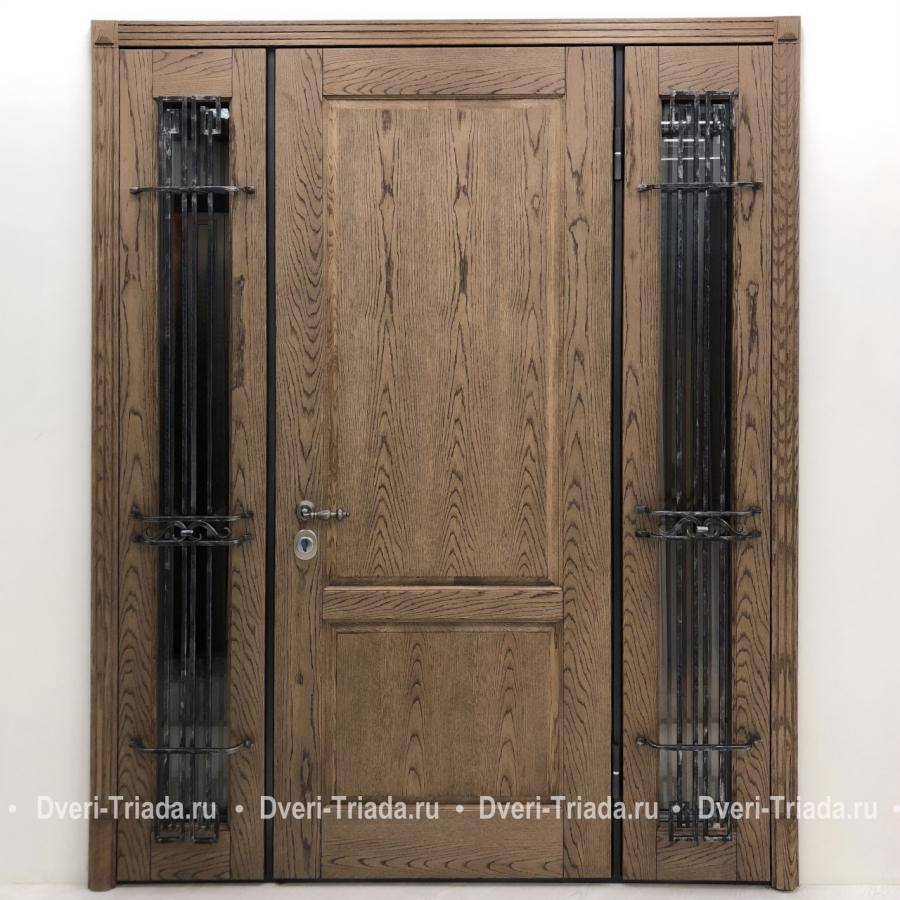 Стальная термодверь с боковыми вставками и кнокером (отделка – плиты МДФ с фрезерной резкой) Арт-628