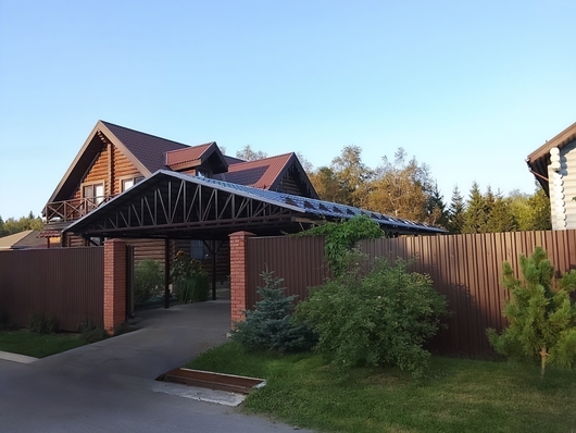 Двускатный навес из металлочерепицы для стоянки авто в доме Арт-656