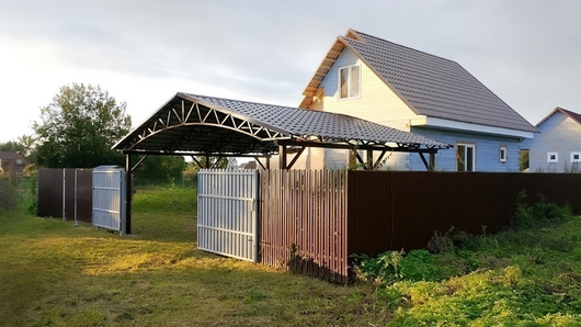 Навес из металлочерепицы двускатный для автомобиля Арт-649