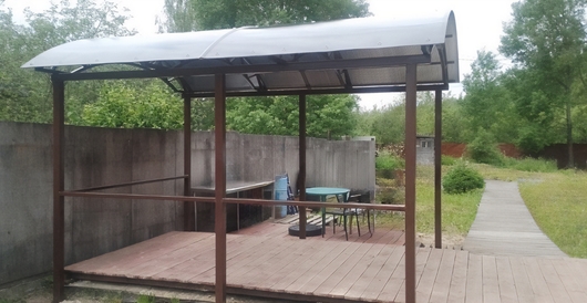 Арочный навес с поликарбонатом для зоны отдыха на дачном участке Арт-686